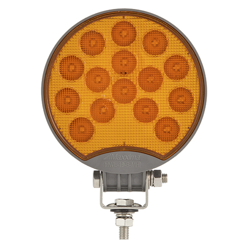 The MWL-19BY-MH is a round work light with MaxxHeat heated lens technology. It incorporates an amber lens to produce an amber light source for applications where a white light source is not as effective (i.e. snow, fog, dust). It features a built-in heater that automatically turns on when the temperature drops below 45° F (7°C). It is 4.8" in diameter and is only 1.5" deep. The all-polycarbonate design is well suited for the harsh chemicals used in snow and ice removal.