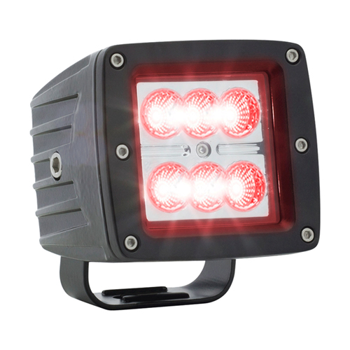 LED 3" cube flood light with supplemental red turn signal function, post mount, 12V