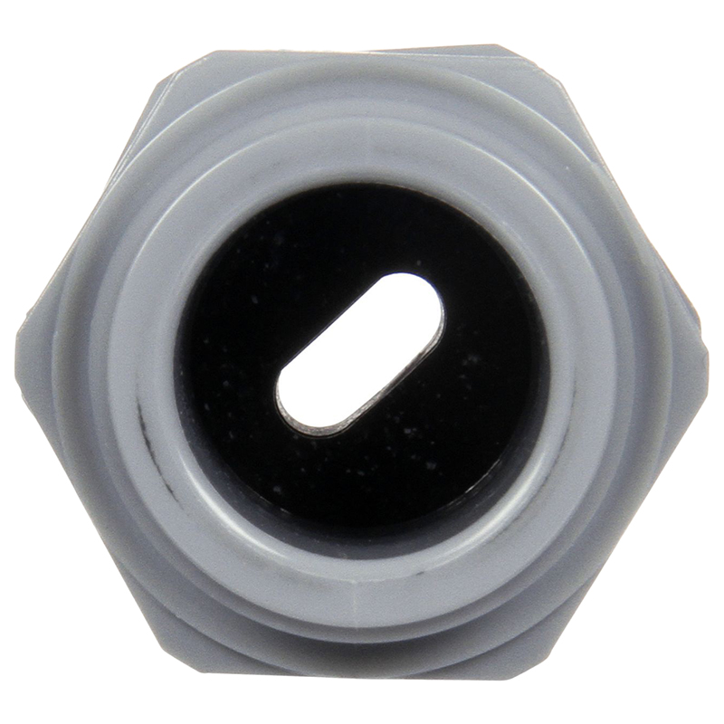 3-part fitting consisting of a pre-tapped cap, threaded base and black PVC grommet that is available with 6 different hole sizes to accommodate various conductor cables