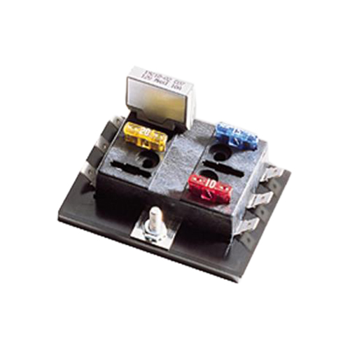 Accepts blade-type fuses, auto or manual reset circuit breakers6 circuits, 30 amps per circuit with quick connect terminalsNo top cover needed; recessed fuse contacts provide touch-safe protectionBlack thermoplastic construction-temperature rating of -20°F (-29° C) to +150° F (65° C)Fuses/Circuit breakers sold separately